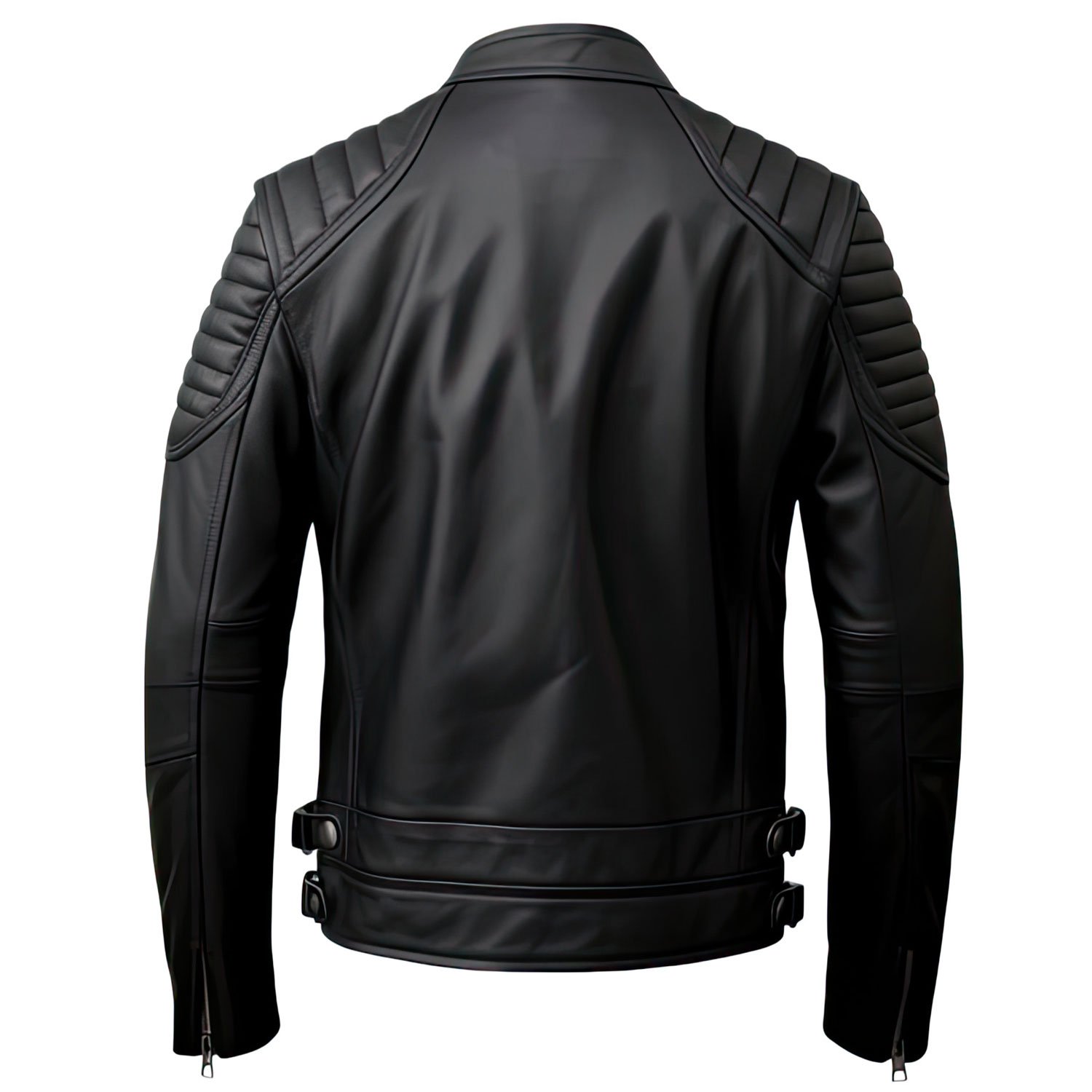 Other standout elements include zippered cuffs, durable front zipper, and a breathable inner lining—blending form and function for all-day comfort whether you’re on a ride or out in the city. The deep black finish and refined cut make it an essential piece for those who seek rugged masculinity, modern edge, and classic biker influence in one versatile jacket.